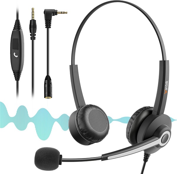 Cuffie Cablate per Computer, Stereo con Microfono, Cancellazione Rumore, ?Jack Audio da 3.5 mm, PC/Mac/Laptop/Smartphone/Tablet, Nero